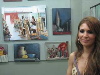 | Η Γιούλη Γκικοπούλου μπροστά σε έργα μαθητών της |