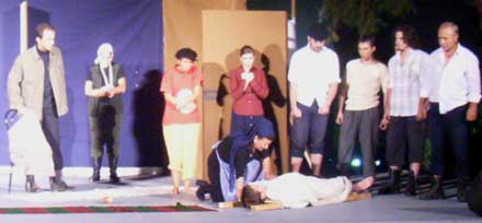 Αυτό πέτυχε το βράδυ της Δευτέρας 26/9/2005 στο θέατρο ¶λσους η παράσταση που παρουσίασε για πρώτη φορά η Θεατρική Σκηνή Ηλιούπολης με το έργο του Μπέρτολτ Μπρεχτ "Τα όπλα της Κυρα - Καρράρ" στα πλαίσια του Φεστιβάλ Ηλιούπολης 2005.
