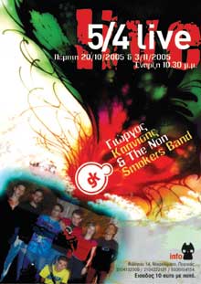 Παραστάσεις στο «5/4 live» στο Μικρολίμανο θα δώσουν αρχίζοντας από σήμερα Πέμπτη 20 Οκτωβρίου και την μεθεπόμενη Πέμπτη 3 Νοεμβρίου ο συμπολίτης μας Γιώργος Καπνίσης και το συγκρότημα «The Non Smokers Band» με παλιά αλλά και καινούργια τραγούδια που θα περιλαμβάνονται στο CD που θα κυκλοφορήσει σύντομα. Όπως δηλώνουν τα παιδιά" Καθώς έφτασε και το φετινό Φθινόπωρο και όλοι αρχίζουν να γυρεύουν τη ζεστασιά του σπιτιού , έτσι και τα μουσικά σχήματα αναζητούν τη θαλπωρή της σκηνής που θα τα φιλοξενίσει για το Χειμώνα.