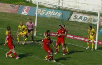 Ετσι οι επιθετικοί των γηπεδούχων κατέφυγαν στη λύση με σουτ εξω από την περιοχή.