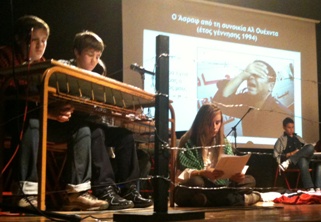 Ηταν μια συγκινητική βραδυά η χθεσινή στο θέατρο του δημαρχείου όπου δεκαπέντε παιδιά του 2ου Γυμνασίου προσπάθησαν και τα κατάφεραν να μας ευαισθητοποιήσουν διαβάζοντας μονόλογους συμμαθητών τους ίσως, που βίωσαν και υπέφεραν από την εισβολή στη χώρα τους τον Δεκέμβρη του 2008 εως τον Γενάρη του 2009, αλλά και μετά από αυτήν.Ιδιαίτερη ατμόσφαιρα δημιούργησε ο Αλέξης Παπαδημητράκης με το ούτι, που νόμιζες ..θρηνούσε για όλους αυτούς τους Μάρτυρες που δεν ξαναείδαν την ανατολή του ήλιου.