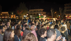 Στην σκηνή του φεστιβάλ ανέβηκε ο Διονύσης Γάκης, από την ΤΟ Ανατολικών της ΚΝΕ. Αναφέρθηκε στις λαμπρές σελίδες αντίστασης που έγραψε η ΚΝΕ και το ΚΚΕ στην περιοχή και κάλεσε τους μαθητές να απομονώσουν τη Χρυσή Αυγή και να στηρίξουν ενεργά την δράση της ΚΝΕ στα σχολεία τους.