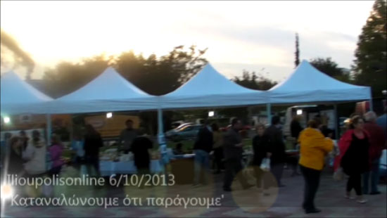 Με τη συμμετοχή επαγγελματιών της πόλης που παρήγαγαν ή εμπορεύονταν Ελληνικά προιόντα, ο Δήμος Ηλιούπολης διοργάνωσε εκδήλωση με θέμα 'ΕΘΝΙΚΗ ΑΝΑΓΚΗ: Καταναλώνουμε ότι παράγουμε' στην Κεντρική Πλατεία της πόλης την Κυριακή 6/10/2013.