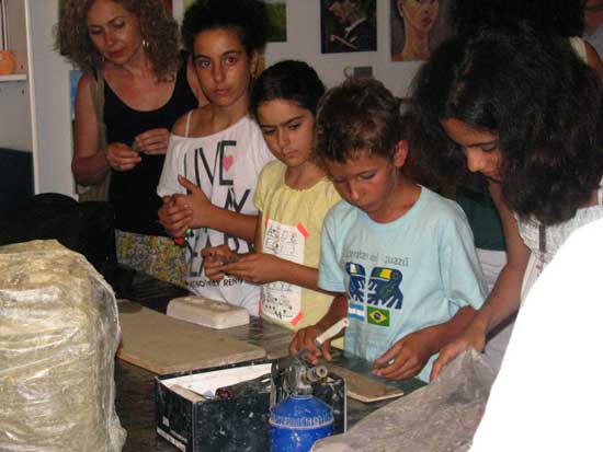 Παράλληλα, οι μαθητές του εργαστηρίου γλυπτικής έφερναν σε πρώτη επαφή με τον πηλό τους επικέπτες.