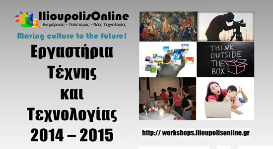 Το IlioupolisOnline ανακοινώνει το πρόγραμμα των εργαστηρίων Τέχνης και Τεχνολογίας που θα λειτουργήσουν για τη σεζόν του 2014-2015 στο χώρο της κοινότητάς του, με ημερομηνία έναρξης Δευτέρα 6 Οκτωβρίου.