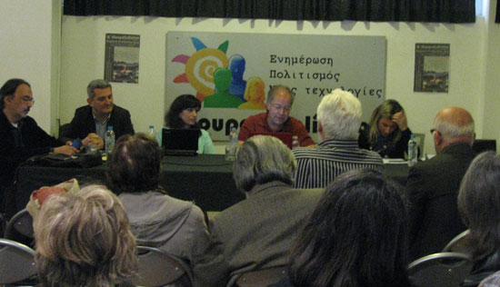 Ακολούθησε ζωηρή και εποικοδομητική συζήτηση που κράτησε αμείωτο το ενδιαφέρον των συμμετεχόντων/ουσών. Ανάμεσα τους ο δημοτικός σύμβουλος Χρήστος Κοκοτίνης (επικεφαλής της δημοτικής κίνησης ΗΛΙΟΥ - πόλις, ανθρώπινη πόλη), η δημοτική σύμβουλος Αγγελική Δουβή, ο ογκολόγος και λογοτέχνης Αλέξανδρος Αρδαβάνης, ο κοινωνιολόγος-συγγραφέας Στέλιος Μπαμπάς, η δρ. Φιλοσοφίας και διδάσκουσα στο Πρόγραμμα Ακαδημία Πλάτωνος Δήμητρα Σγουρούδη, η καθηγήτρια του Παν/μίου Κρήτης συγγραφέας στον τόμο Βάλια Αρανίτου, ο δρ. Πολιτικής Επιστήμης ΕΚΠΑ και συγγραφέας στον τόμο Γιώργος Μπιθιμήτρης, κ.ά.