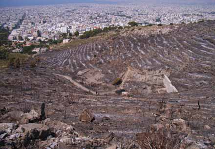 Λόγω της κατεύθυνσης του ανέμου, η φωτιά εξαπλώθηκε προς το βουνό, ακόμη και πάνω από το μνημείο που έχει στηθεί για τους πυροσβέστες που έχασαν τη ζωή τους στη πυρκαγιά του 1999. Τελικά, όταν ύστερα από 3 ώρες οι πυροσβεστικές δυνάμεις κατάφεραν να την σταματήσουν, ο απολογισμός, σύμφωνα με εκτιμήσεις, αναφέρει 450 περίπου στρέμματα καμμένης γής από την οποία ένα μέρος ήταν αναδασωμένο.