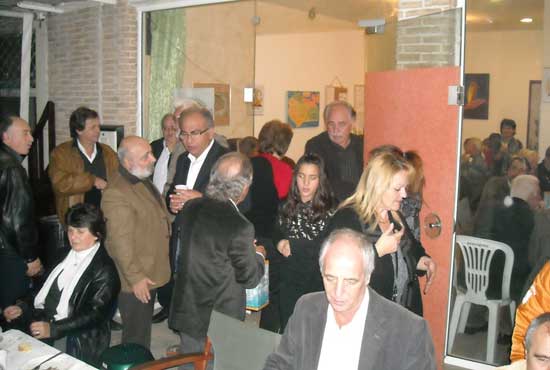Οι καλεσμένοι που κατέκλυσαν ασφυκτικά την αίθουσα, τα πεζοδρόμια και τους γύρω χώρους, απόλαυσαν καλό κρασί, μεζέδες που προετοίμασαν οι φίλες και εκλεκτό γαμοπίλαφο που επιμελήθηκε ο φίλος Μανόλης Νιολάκης.