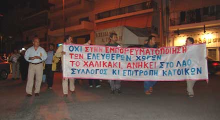 Συγκέντρωση στο Χαλικάκι και πορεία διαμαρτυρίας μέχρι την εκκλησία της Αγία Μαρίνας πραγματοποιήθηκε την Πέμπτη 6/10/2005 το απόγευμα από κατοίκους της περιοχής και εκπροσώπους των αντιπολιτευόμενων δημοτικών κινήσεων με κεντρικό σύνθημα 'Το Χαλικάκι όχι σε ιδιώτη'.