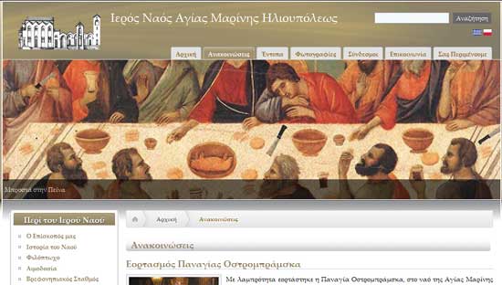 Νέα ιστοσελίδα για τον Ι.Ν Αγίας Μαρίνας