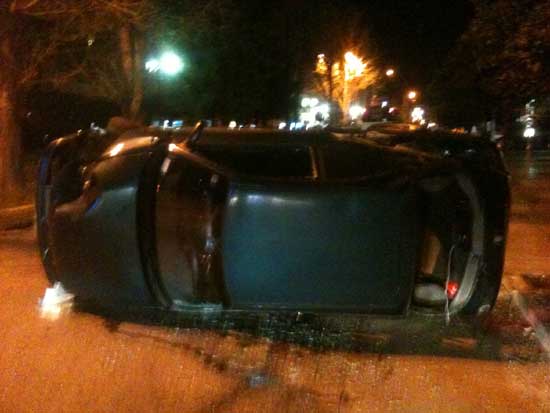 Ο οδηγός, με μάρκα αυτοκινήτου ΙΧ Hundai, είχε κατεύθυνση από του Σκλαβενίτη προς την πλατεία Κανάρια επι της Μαρίνου Αντύπα. Στο άνοιγμα που υπάρχει στο μπάσκετ του Χαραυγιακού, ένα ταξί που ερχόταν από την αντίθετη κατεύθυνση έστριψε απότομα αριστερά στο άνοιγμα προκειμένου να διασχίσει κάθετα τον δρόμο. Ο οδηγός του ΙΧ προκειμένου να αποφύγει τη σύγκρουση έστριψε απότομα δεξιά το τιμόνι και τελικά έχασε τον έλεγχο του αυτοκινήτου, το οποίο αφού προσέκρουσε στο κράσπεδο, έκοψε μία κολώνα και τελικά αναποδογύρισε. Ο οδηγός και ο συνοδηγός φορούσαν τις ζώνες ασφαλείας και δεν έπαθαν κάτι. Η μία από τις κοπέλλες, 15 ετών, που κάθονταν πίσω πετάχτηκε έξω από το παράθυρο ενώ η δεύτερη κοπέλλα απεγκλωβίστηκε αφού πρώτα έσπασαν το παράθυρο οι παρεβρισκόμενοι στο συμβάν.