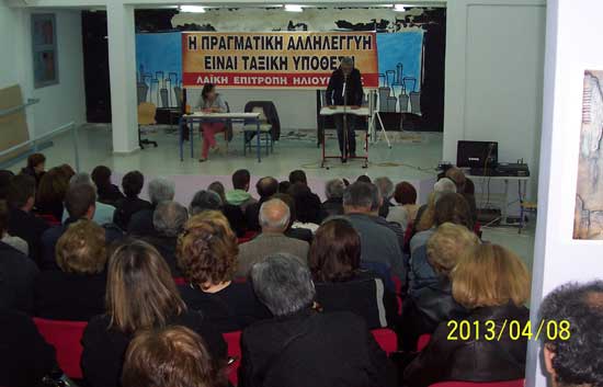 Αναδείχθηκε η ανάγκη συσπείρωσης και συμμετοχής στα ταξικά Σωματεία και Συνδικάτα, στην πάλη για Υγεία-Πρόνοια-Περίθαλψη δημόσια και δωρεάν για όλους, στη στήριξη των ανέργων και των διεκδικήσεων τους, η συνεισφορά της ΛΕ στην οικοδόμηση δικτύου ταξικής λαϊκής αλληλεγγύης με διάφορες μορφές (τρόφιμα, επανασύνδεση ρεύματος, λαϊκό φροντιστήριο για τα παιδιά των ανέργων, παραστάσεις στη ΔΕΗ, τον ΕΟΠΥΥ, την εφορία και τον Δήμο). Σημειώθηκε, ότι παρά τις αδυναμίες, η συνεισφορά της ΛΕ στην οργάνωση του λαού της περιοχής ήταν σημαντική και παραμένει η ανάγκη για την ενίσχυση και δραστηριοποίηση μεγαλύτερου τμήματος του λαού μας.