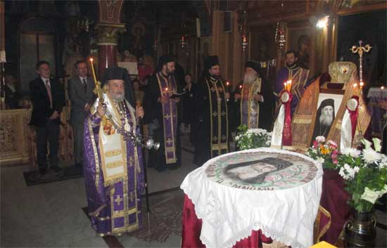 Το ζωγραφικά διακοσμημένο με την προσωπογραφία του Μακαριστού Πρωθιεράρχη δίσκο με το κόλλυβο, προετοίμασαν οι πατέρες της Μονής Παναγίας Κατακεκρυμένης Άργους ενώ το διένειμαν μετά και το Μέγα Απόδειπνο που τελέσθηκε εν συνεχεία, οι κυρίες της ενοριακής δράσης.