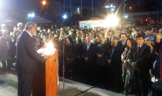 Με την βεβαιότητα της νίκης ξεκίνησε η προεκλογική του ομιλία και στη συνέχεια μίλησε για τη δύσκολη κατάσταση εν καιρώ κρίσης που η σημερινή διοίκηση παρέλαβε τον δήμο.