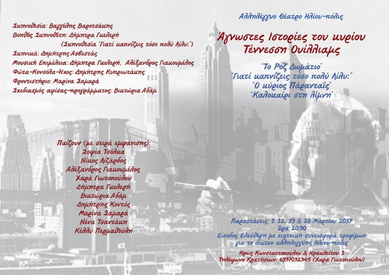 Θεατρική παράσταση "Αγνωστες Ιστορίες του κυρίου Τέννεση Ουίλιαμς" του Αλληλέγγυου Θεάτρου Ηλίου-πόλις"