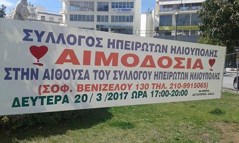 ΑΙΜΟΔΟΣΙΑ ΣΤΟ ΣΥΛΛΟΓΟ ΗΠΕΙΡΩΤΩΝ ΗΛΙΟΥΠΟΛΗΣ