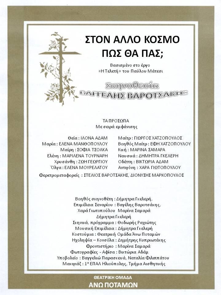 θεατρική παράσταση; ΣΤΟΝ ΑΛΛΟ ΚΟΣΜΟ ΠΩΣ ΘΑ ΠΑΣ