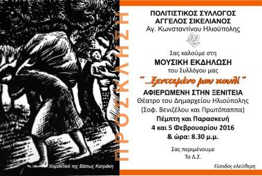 Πολιτιστικός Σύλλογος ΑΓΓΕΛΟΣ ΣΙΚΕΛΙΑΝΟΣ: ΑΦΙΕΡΩΜΑ ΣΤΗΝ ΞΕΝΙΤΙΑ